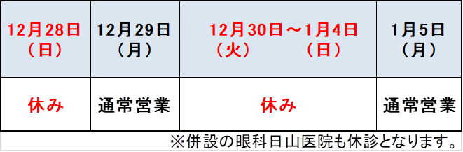 東広島アイコンタクトの年末年始休業をお知らせいたします。